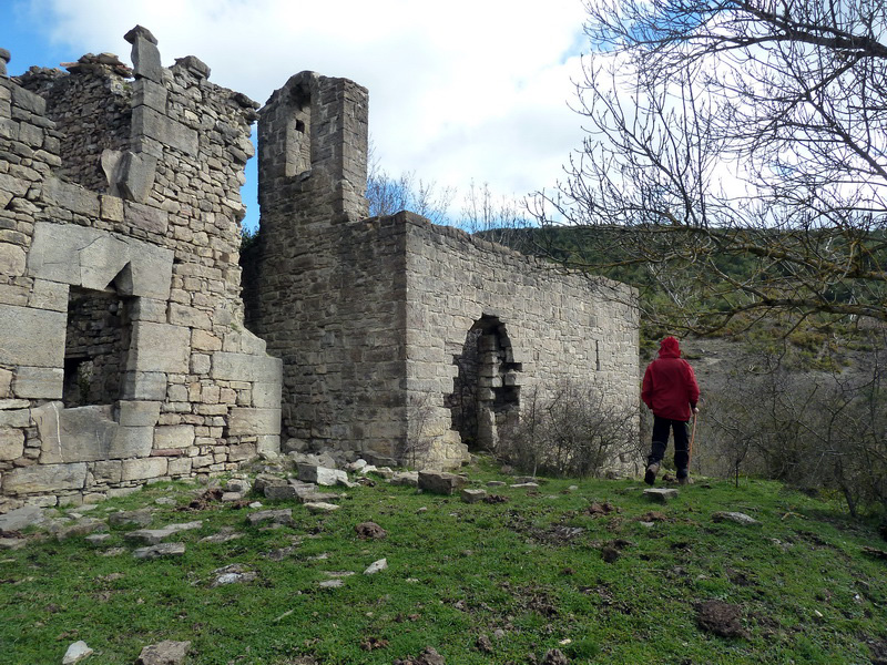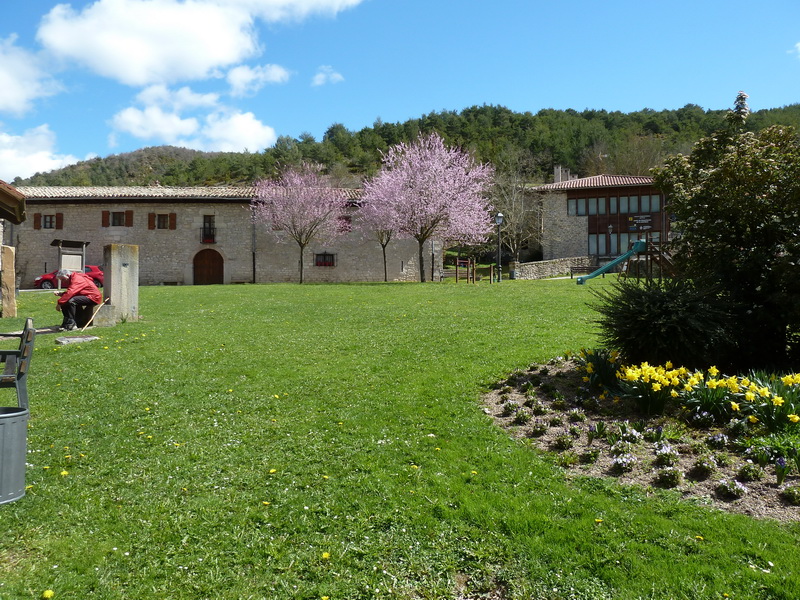 10:54. Dejamos el coche en la plaza de este renovado pueblo (575m) y nos dirigimos al este pasando por debajo de ese pasadizo.