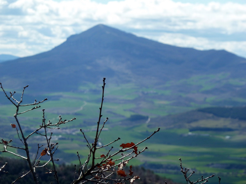Peña Itzaga y la Higa de Monreal, aunque la cámara enfoque las ramas del primer plano...