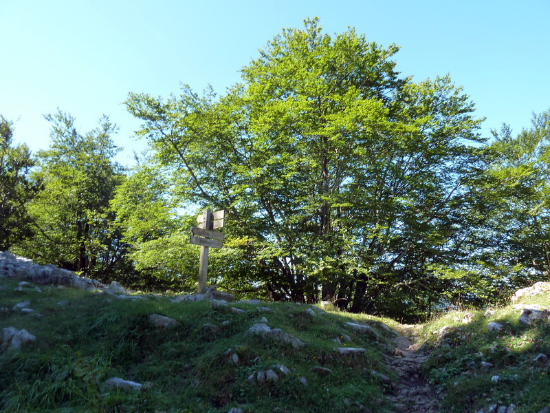 Se llega a este gran hito, al pie de la subida final. En realidad, se va más o menos de frente (pintura roja e hitos).