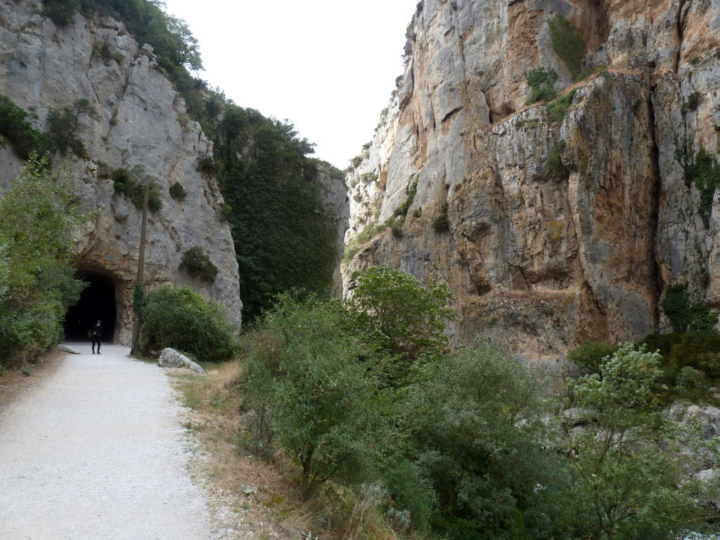 Y llegamos al primer túnel. Justo antes, por la izquierda, parte un estrecho sendero que lleva al puente romano. Hay mucha gente y el suelo está pulido. Cuidado.