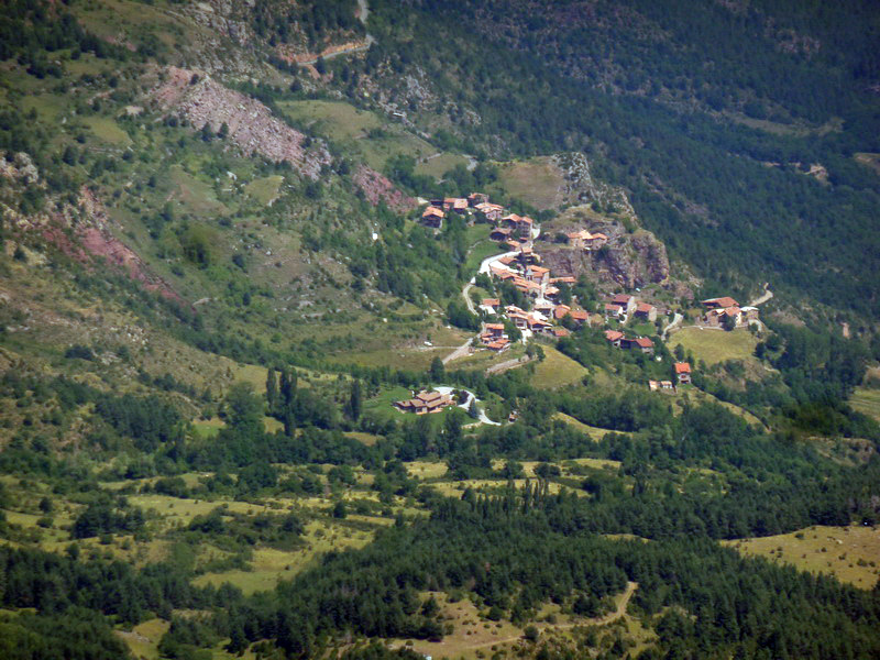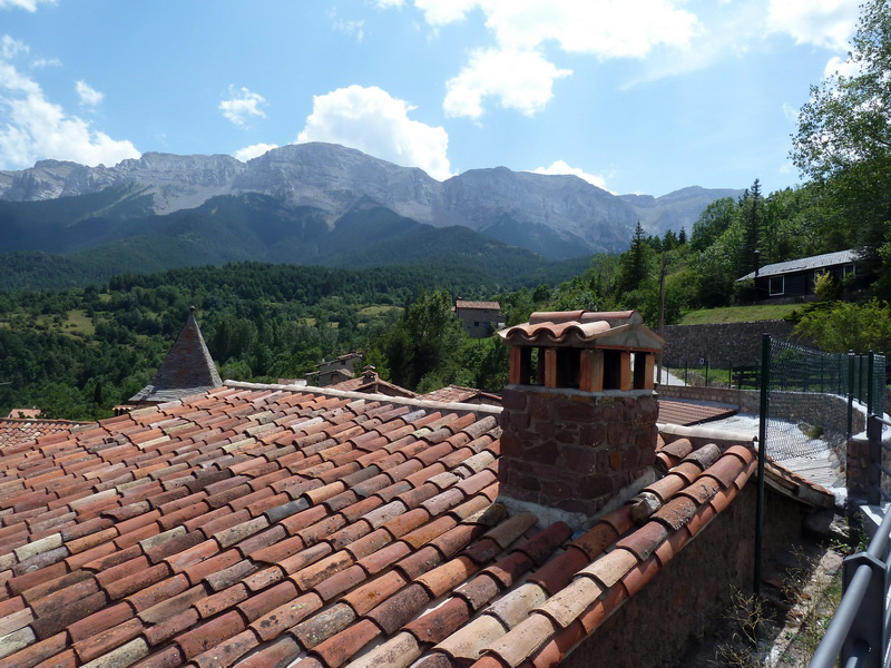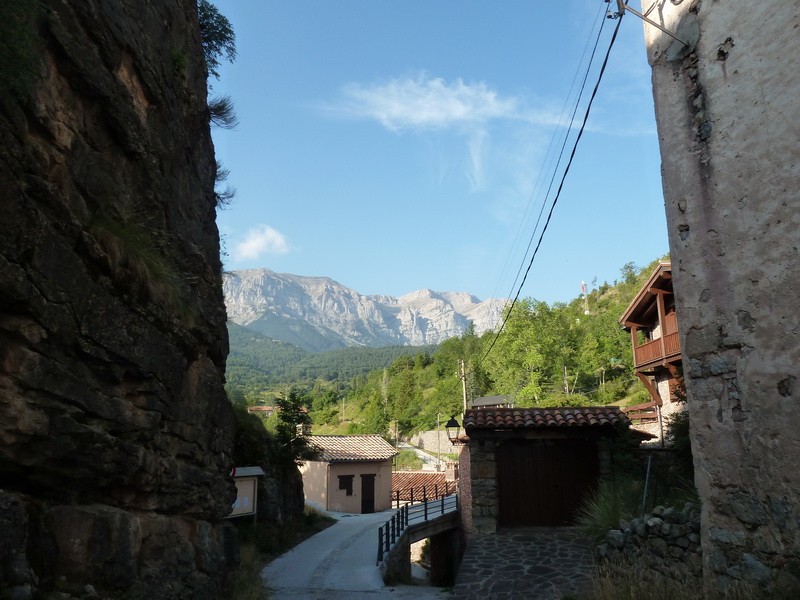 Dejo el coche en este pueblo tan apartado como peculiar. Al fondo, destaca la muralla del Cadí.