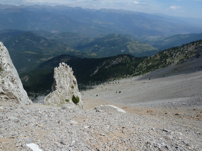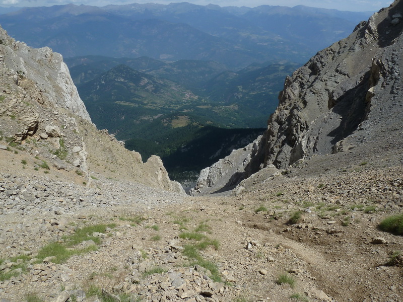 Se acaba la hierba y entramos en el reino de la roca. La senda, al menos, es clara, hitada, y se acerca en diagonal al corredor.