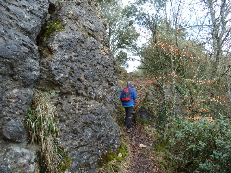 Cuando estamos cerca de la pared, estamos atentos a dos hitos que nos invitan a adentrarnos en el bosque.