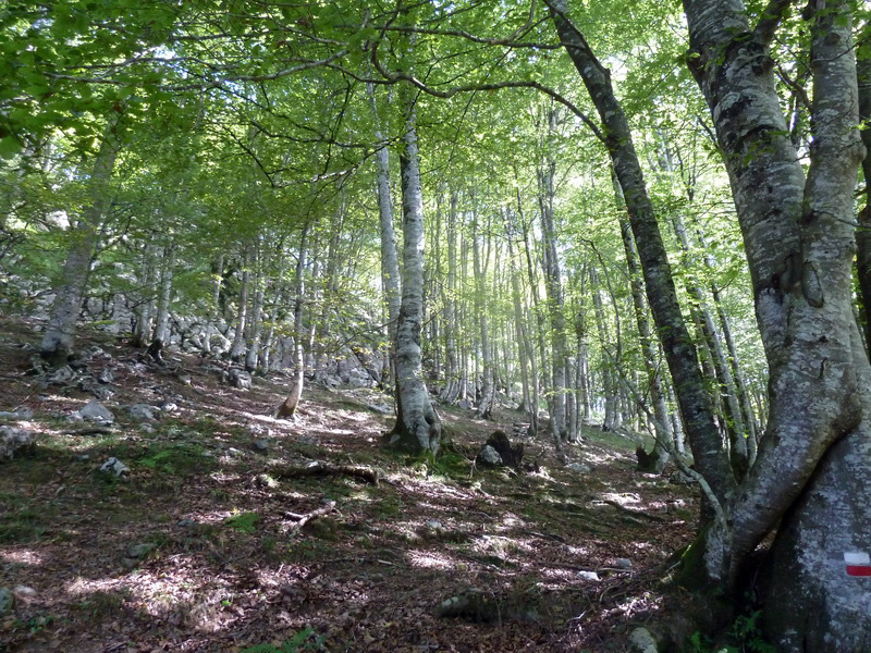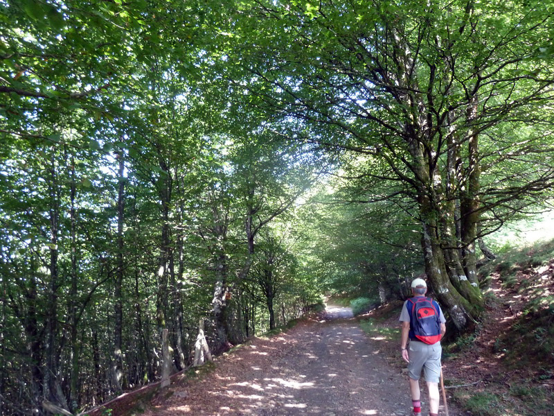 10:06. Poco antes de llegar a Venta Quemada, por el puerto antiguo, tomamos una pista que se dirige a las antenas de Berriozokoa. Vamos progresando por el bosque (894m).