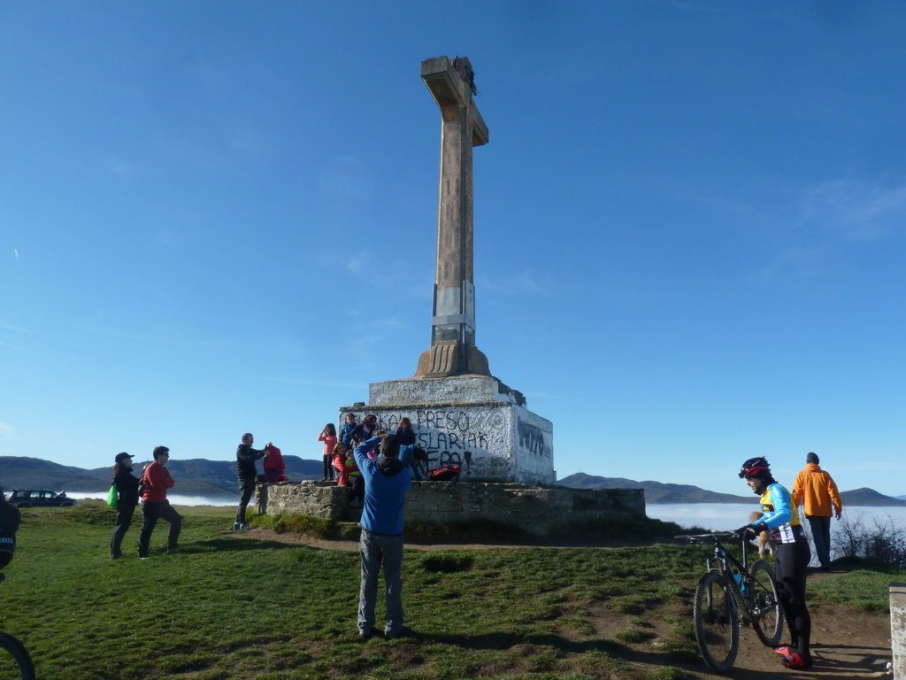 12:00. Santakuruzgana (705m), en algo menos de una hora. La gente disfruta del soleado día. Es una montaña con un acceso sencillo y que hoy depara una panorámica espectacular.