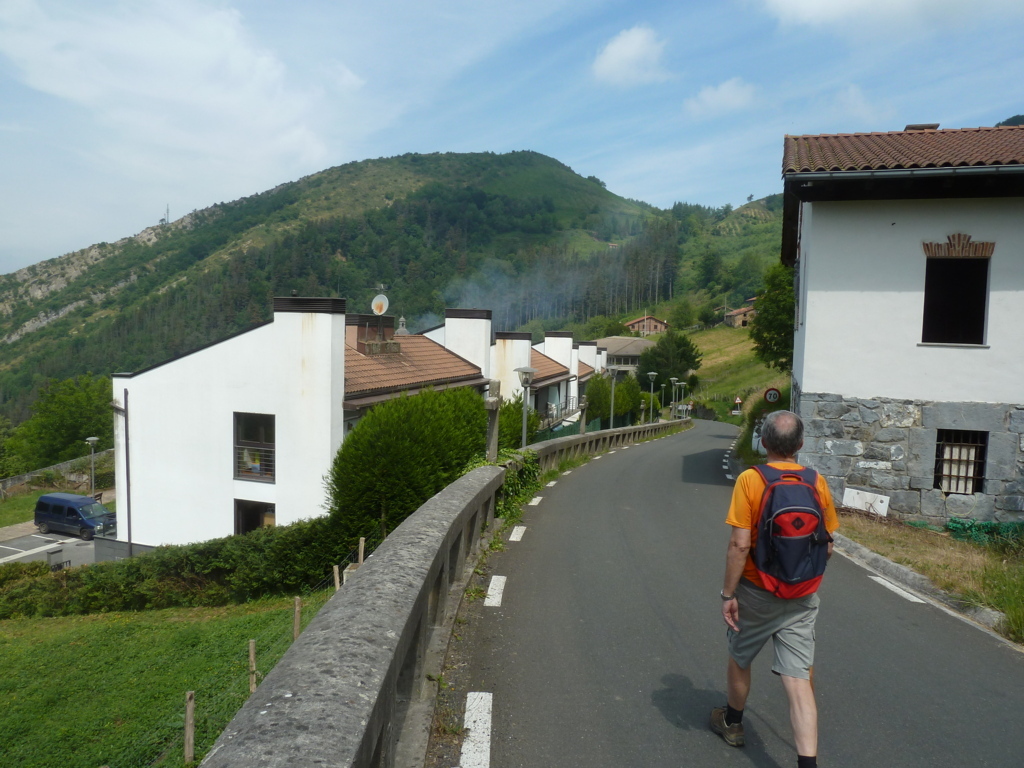 10:30. Dejamos el coche en Beizama (485m) y bajamos unos metros hacia Azpeitia con la montaña de hoy enfrente.