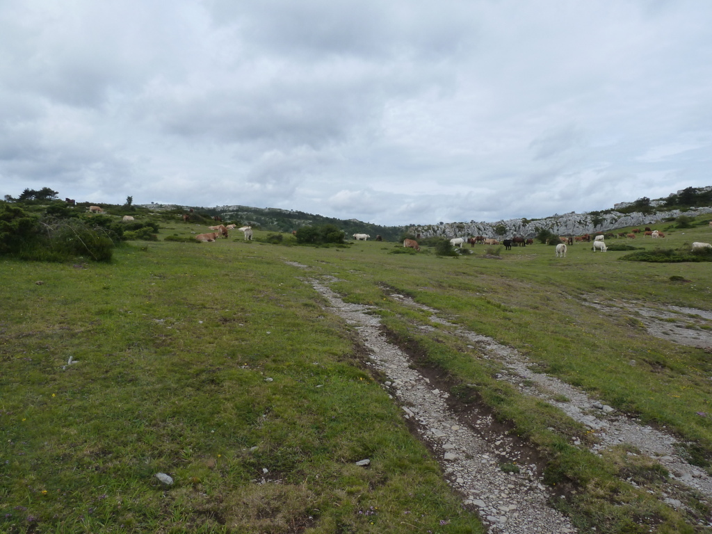 Aquí el terreno se ensucia, afloran el lapiaz y la vegetación, y hay que seguir los hitos con atención. En cualquier caso, el rumbo es evidente.