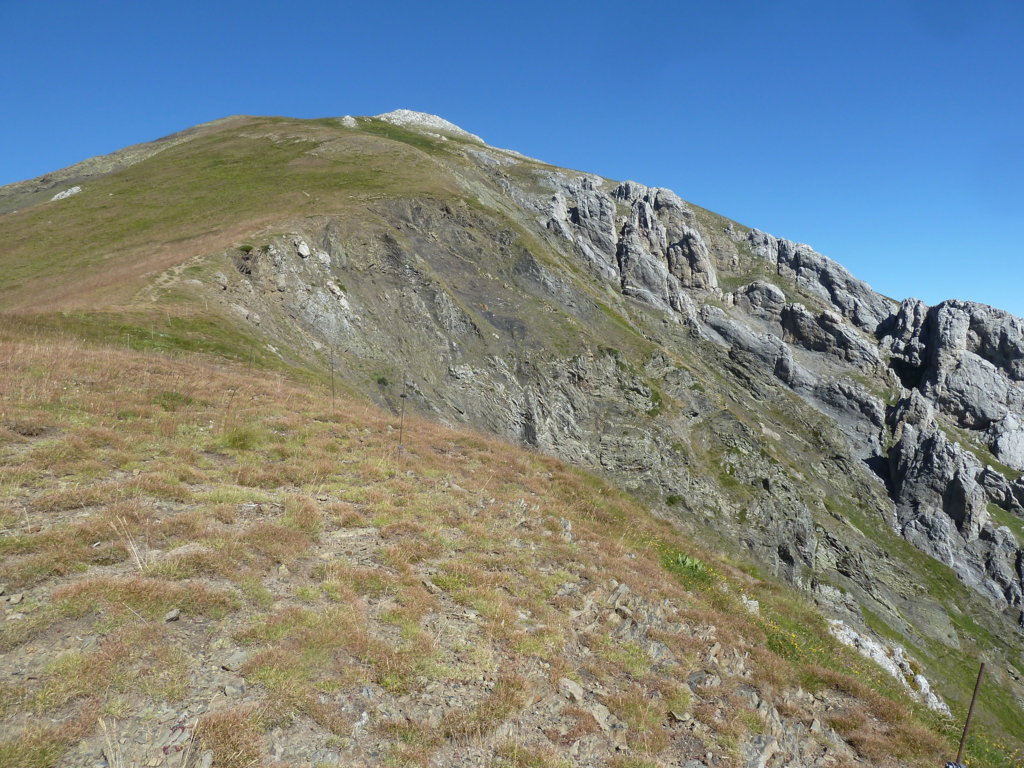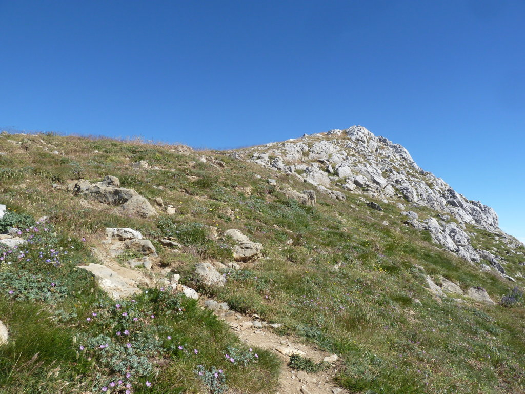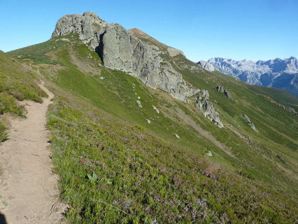 9:35. Partimos desde el collado de Llesba (1.637m) por el cordal herboso que tenemos a la izquierda.